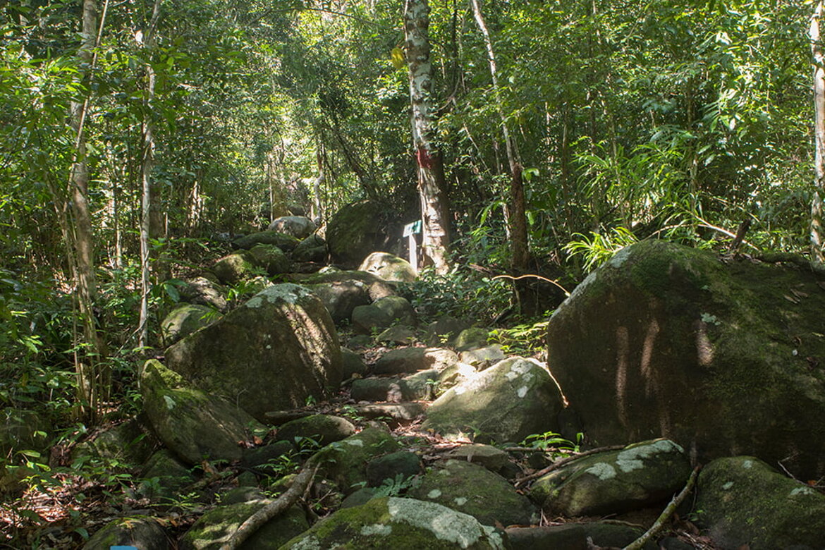 a tropicale densa e fitta, e assomiglia a una gigantesca carapace di tartaruga circondata da rocce vulcaniche che la proteggono dalle intemperie marine.